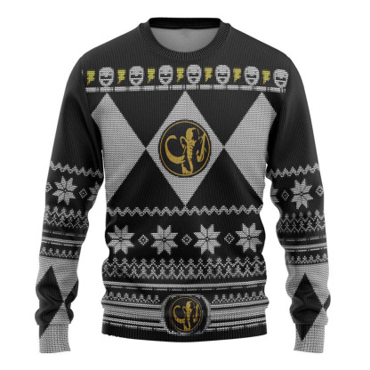 3D Mighty Morphin Black Power Ranger Custom Ugly Christmas Sweater Holiday Gift
