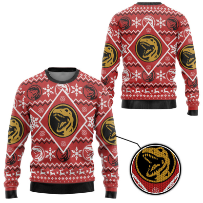 3D Mighty Morphin Red Power Ranger Ugly Christmas Sweater