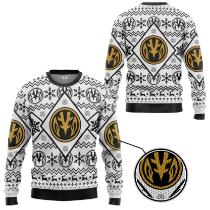 3D Mighty Morphin White Power Ranger Custom Ugly Christmas Sweater Holiday Gift
