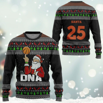 3D Santa Claus 25 Basketball Christmas Ugly Christmas Sweater