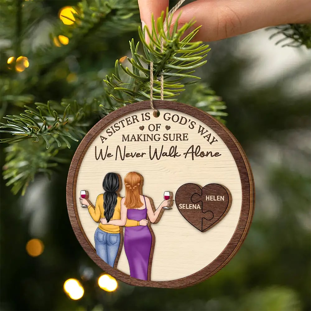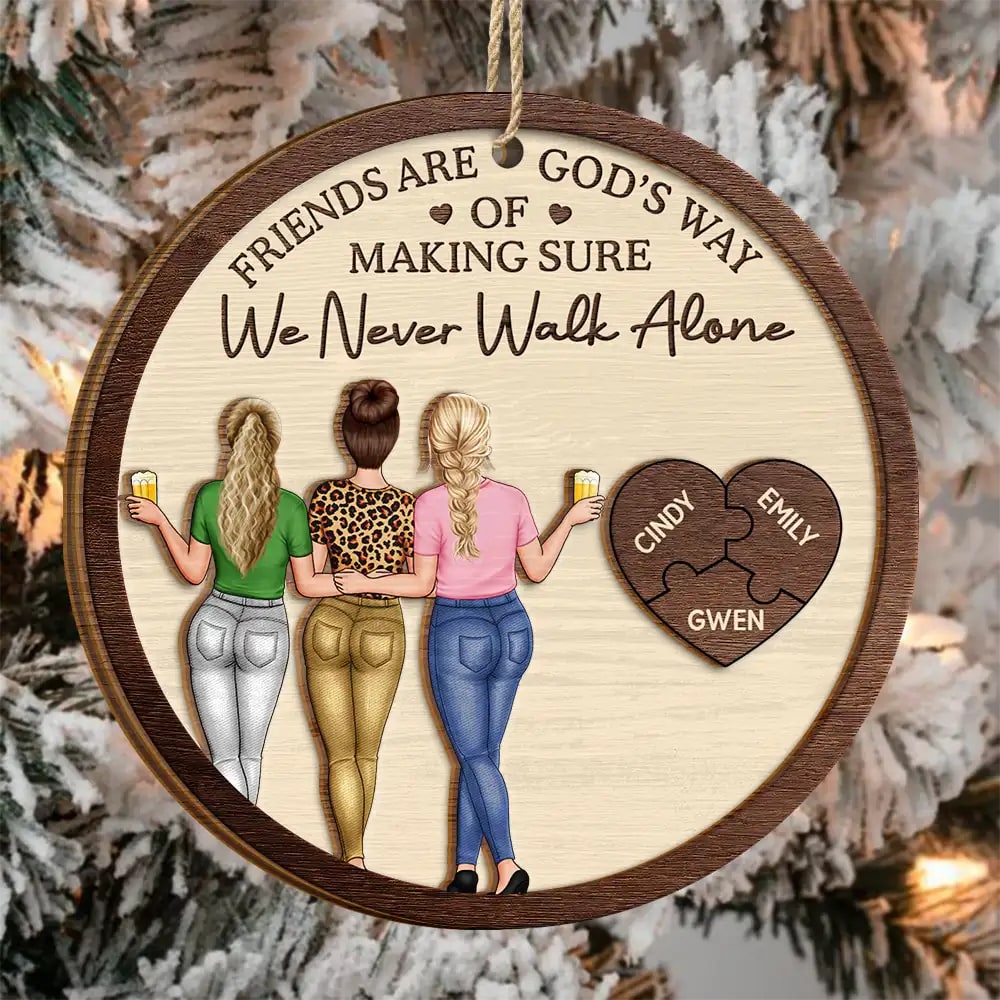 A Friend Is God's Way Of Making Sure We Never Walk Alone - Personalized 2-Layered Wooden Ornament