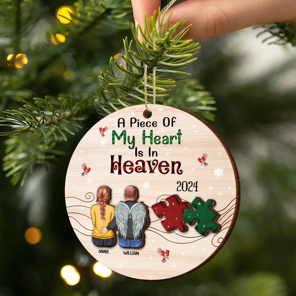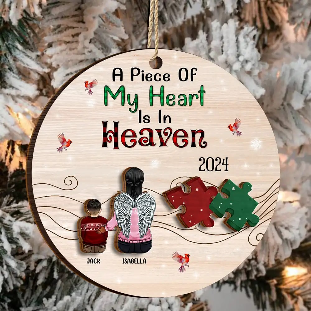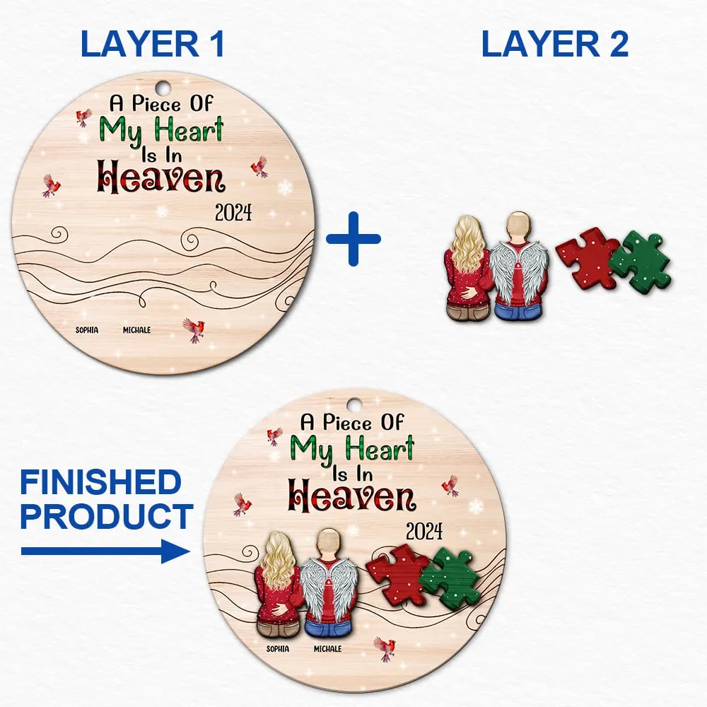 A Piece Of My Heart Is In Heaven – Personalized 2-Layered Wooden Ornament