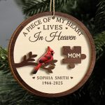 Discover a heartfelt way to honor loved ones with the A Piece Of My Heart Lives In Heaven – Personalized 2-Layered Wooden Ornament. This unique memorial gift for grandparents, parents, or family members brings warmth and remembrance during Christmas, Thanksgiving, Mother’s Day, Father’s Day, birthdays, or anniversaries. Designed for moments of sympathy, bereavement, and deep remembrance, it offers a meaningful keepsake for those cherishing the memory of someone dear.