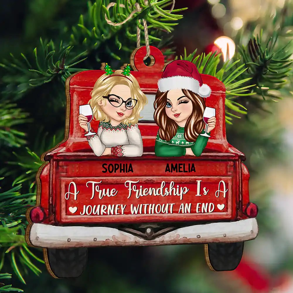 A True Friendship Is A Journey Without An End Red Truck – Personalized Custom Shaped Wooden Ornament