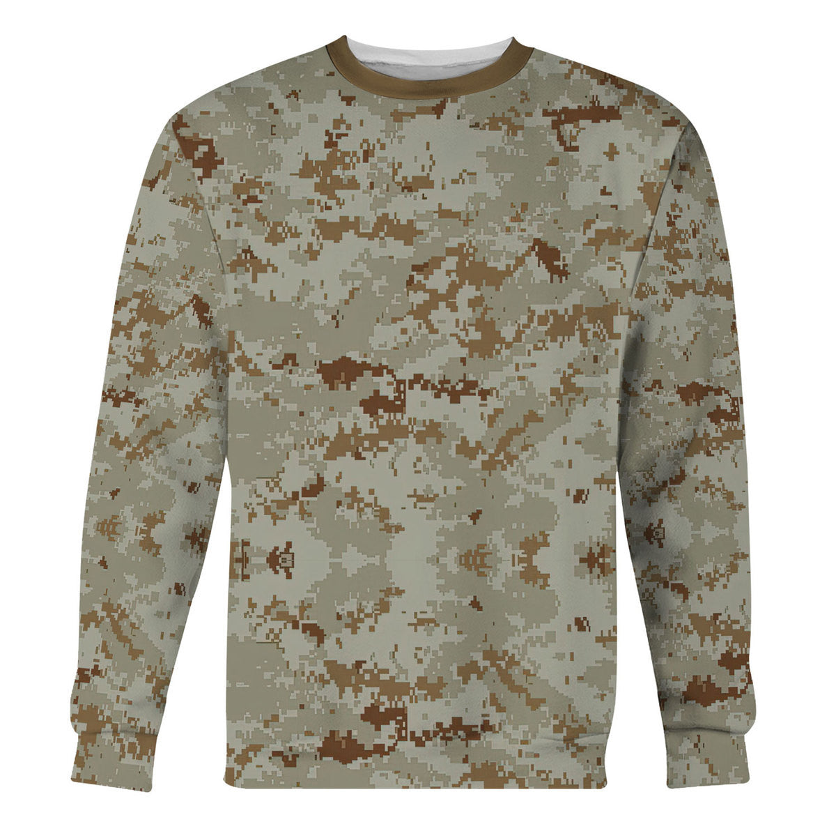 The American Marine Pattern Desert Camo Sweatshirt is the perfect choice for all-over-print apparel lovers who appreciate unique and eye-catching designs. This stylish sweatshirt from The Halloween Smoke makes a fantastic gift, and with the option for personalization, you can truly make it your own.