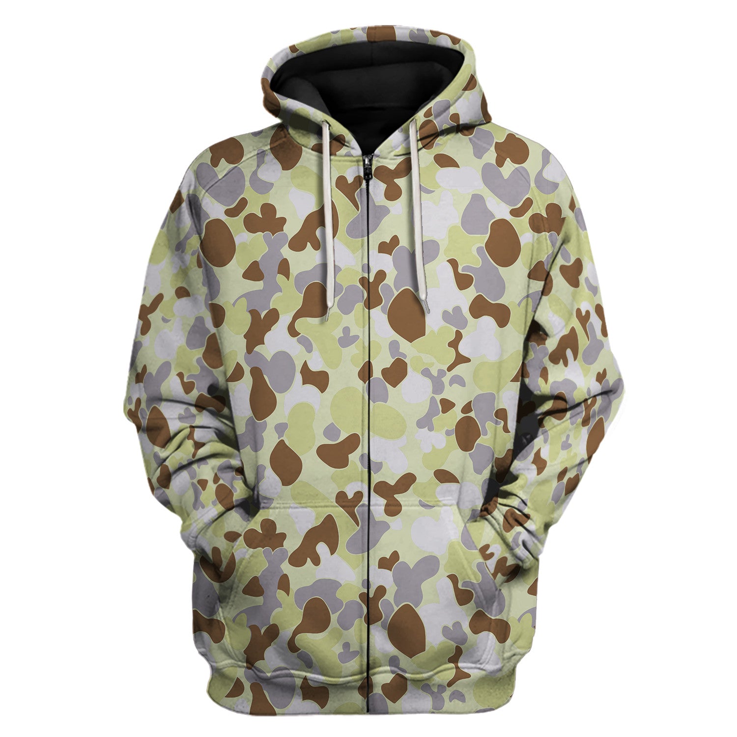 The Australian Disruptive Pattern Desert Uniform Hoodie zip from The Halloween Smoke is an exceptional choice for all-over-print apparel lovers, offering a unique and eye-catching design that makes for a memorable gift. Personalize your style with this one-of-a-kind piece, crafted specifically to reflect your individuality.