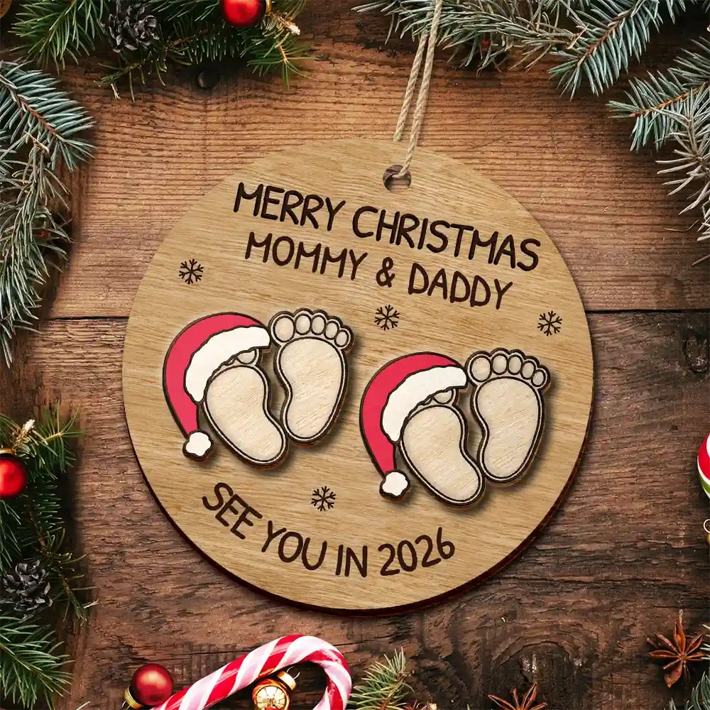 Baby Expecting See You In 2026 – Personalized 2-Layered Wooden Ornament