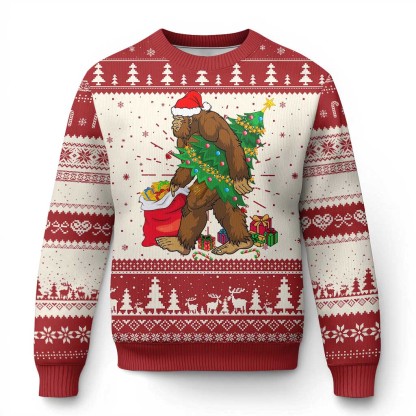 Bigfoot Christmas Ugly Christmas Sweater Believe Sasquatch Lovers Xmas Tree Lights