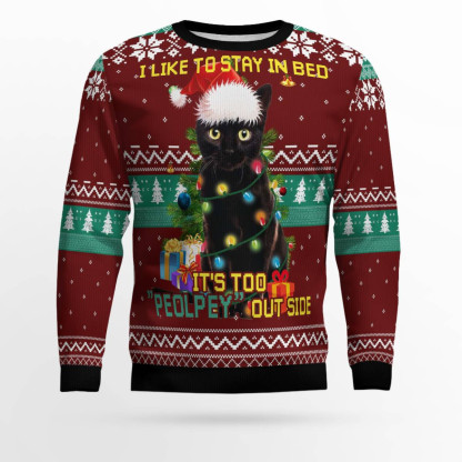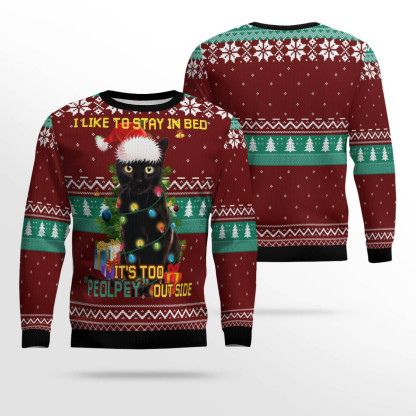 Black Cat Like Stay To In Bed Xmas Ugly Christmas Sweater