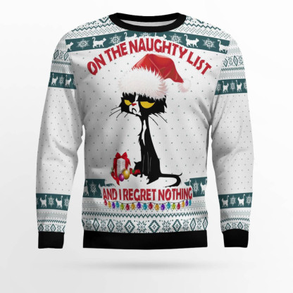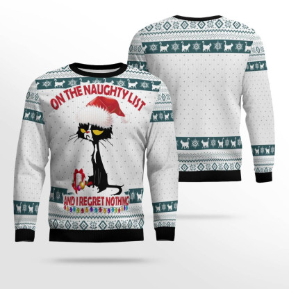 Black Cat Naughty List Ugly Christmas Sweater