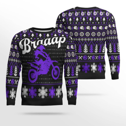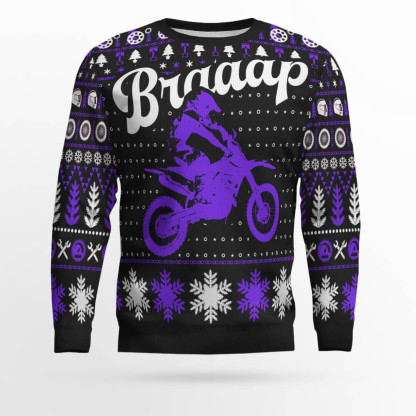Braaap Moto Ugly Christmas Sweater Purple Version