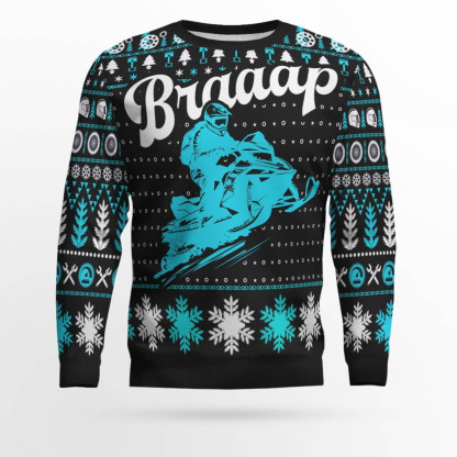 Braaap Snowmobile Ugly Christmas Sweater Blue Version