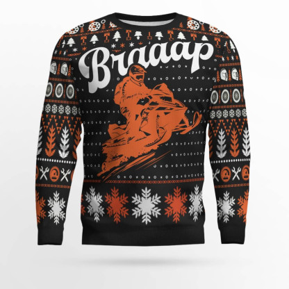 Braaap Snowmobile Ugly Christmas Sweater Orange Version