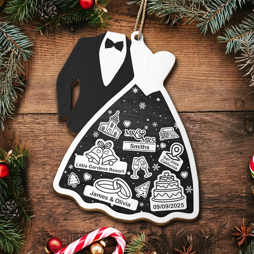 Personalize both sides with names, dates, or a sweet message to make this ornament truly unique and appreciated. Crafted from wood with fine detail, it’s perfect for decorating a Christmas tree, gift box, or love corner in your home.