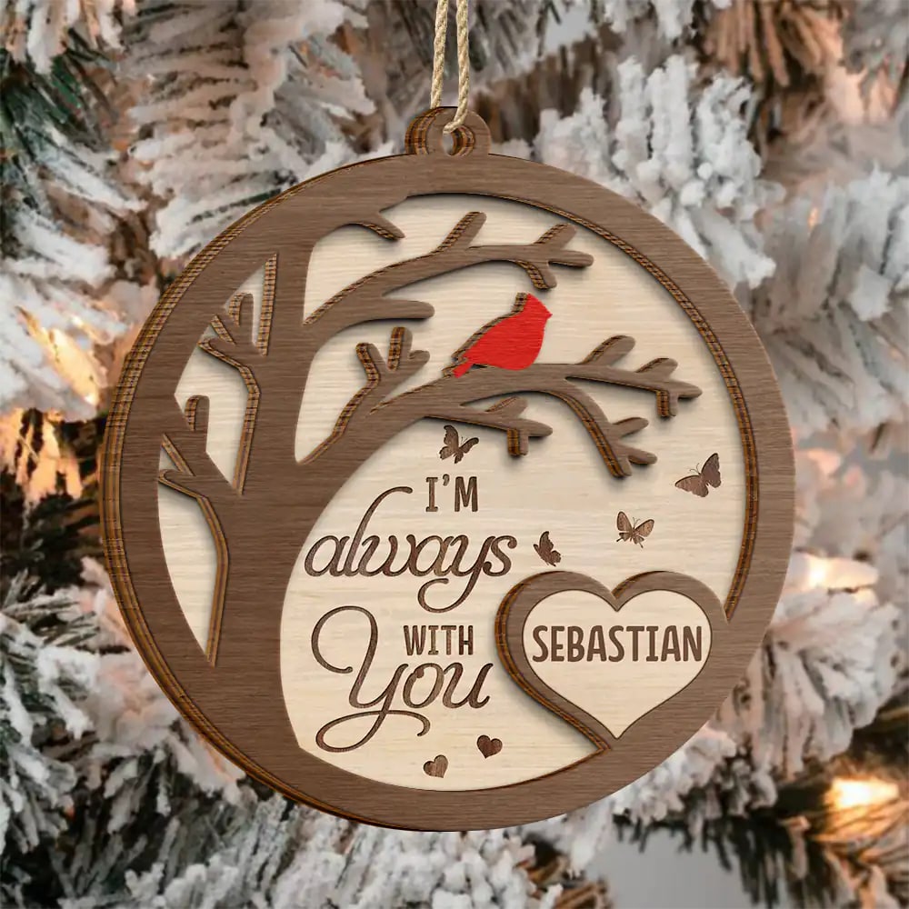Cardinal Memorial We’re Always With You – Personalized 2-Layered Wooden Ornament