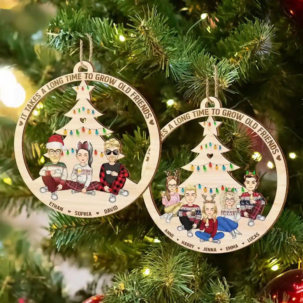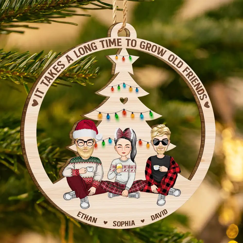 Cartoon Grow Old Friends – Personalized Wooden Cutout Ornament