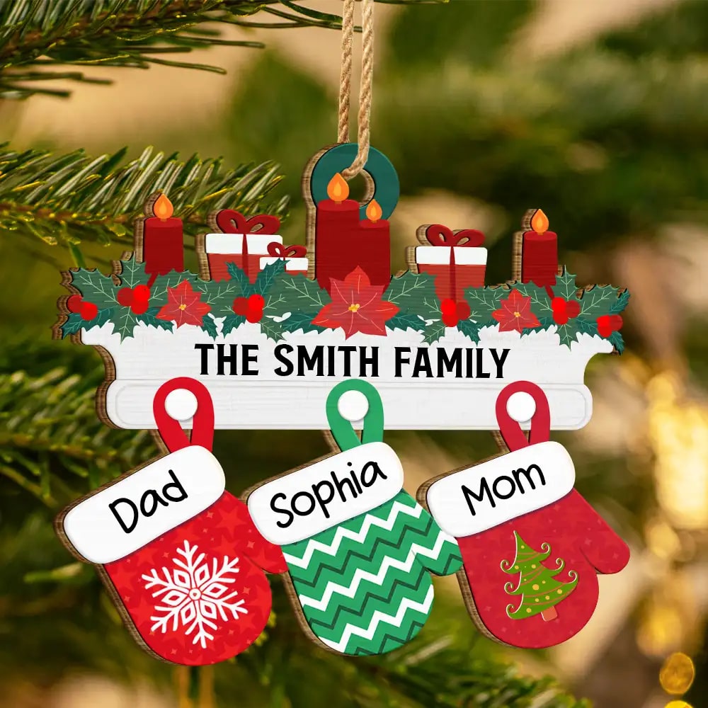 Christmas Family Warm Mittens – Personalized Wooden Cutout Ornament