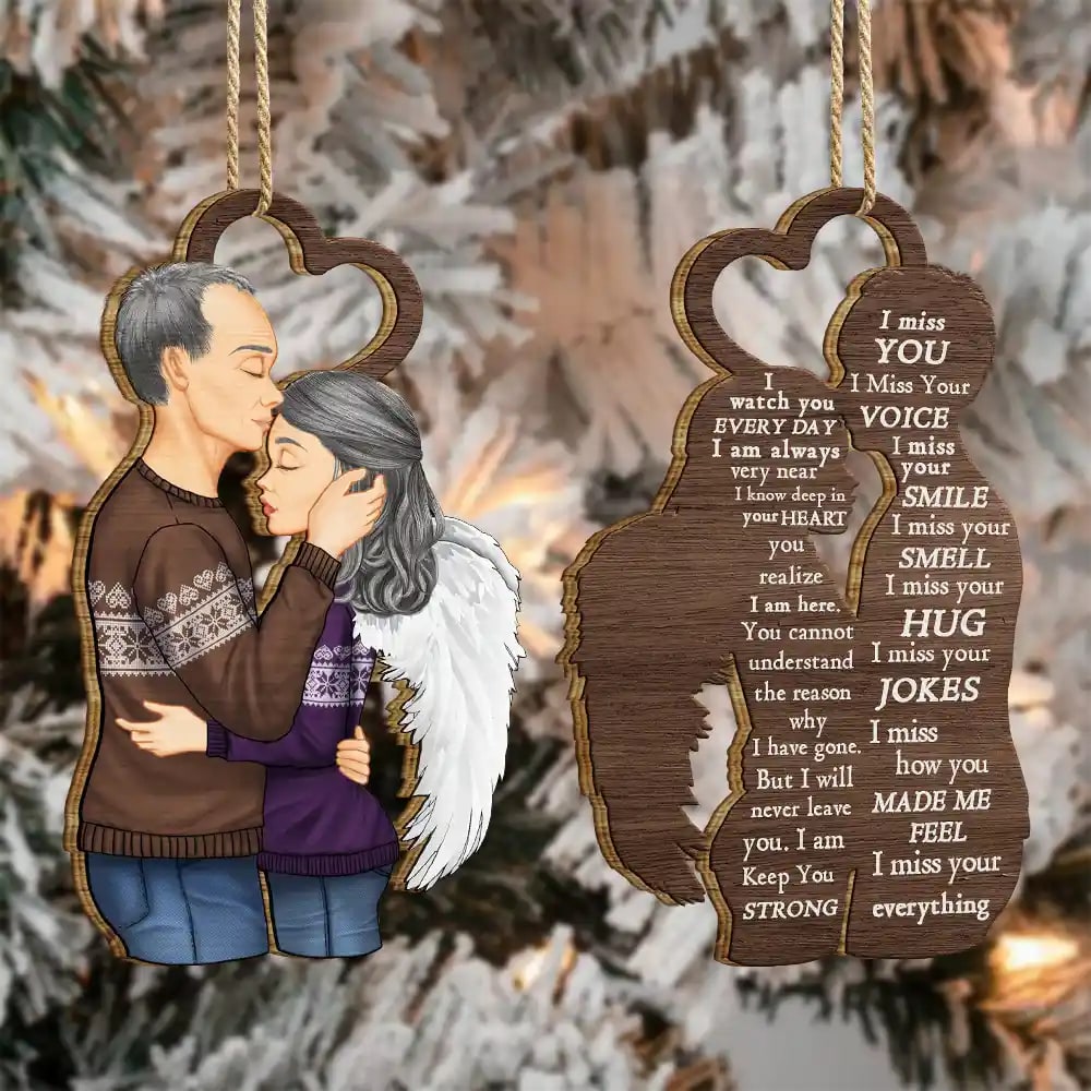 Honor cherished memories with the Christmas Memorial I Miss You – Personalized Wooden Ornament Print 2 Sides, a thoughtful keepsake designed for those who have lost loved ones. Gift For Couples, Husbands, Wives, moms, dads, boyfriends, and girlfriends on Weddings, Valentine’s Day, Mother’s Day, Father’s Day, Thanksgiving, Christmas, birthdays, and anniversaries. This sad yet meaningful ornament serves as a heartfelt reminder of love and connection, perfect for commemorating special moments during the holiday season.