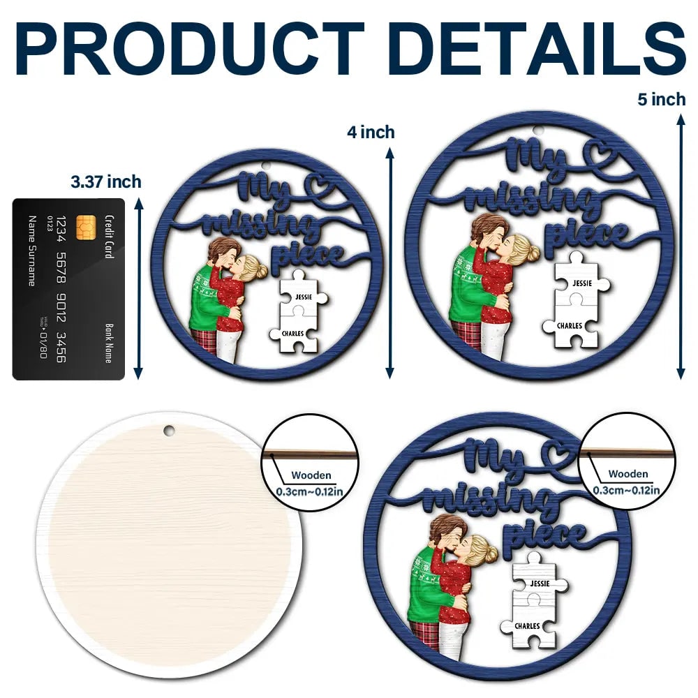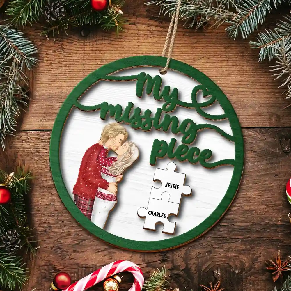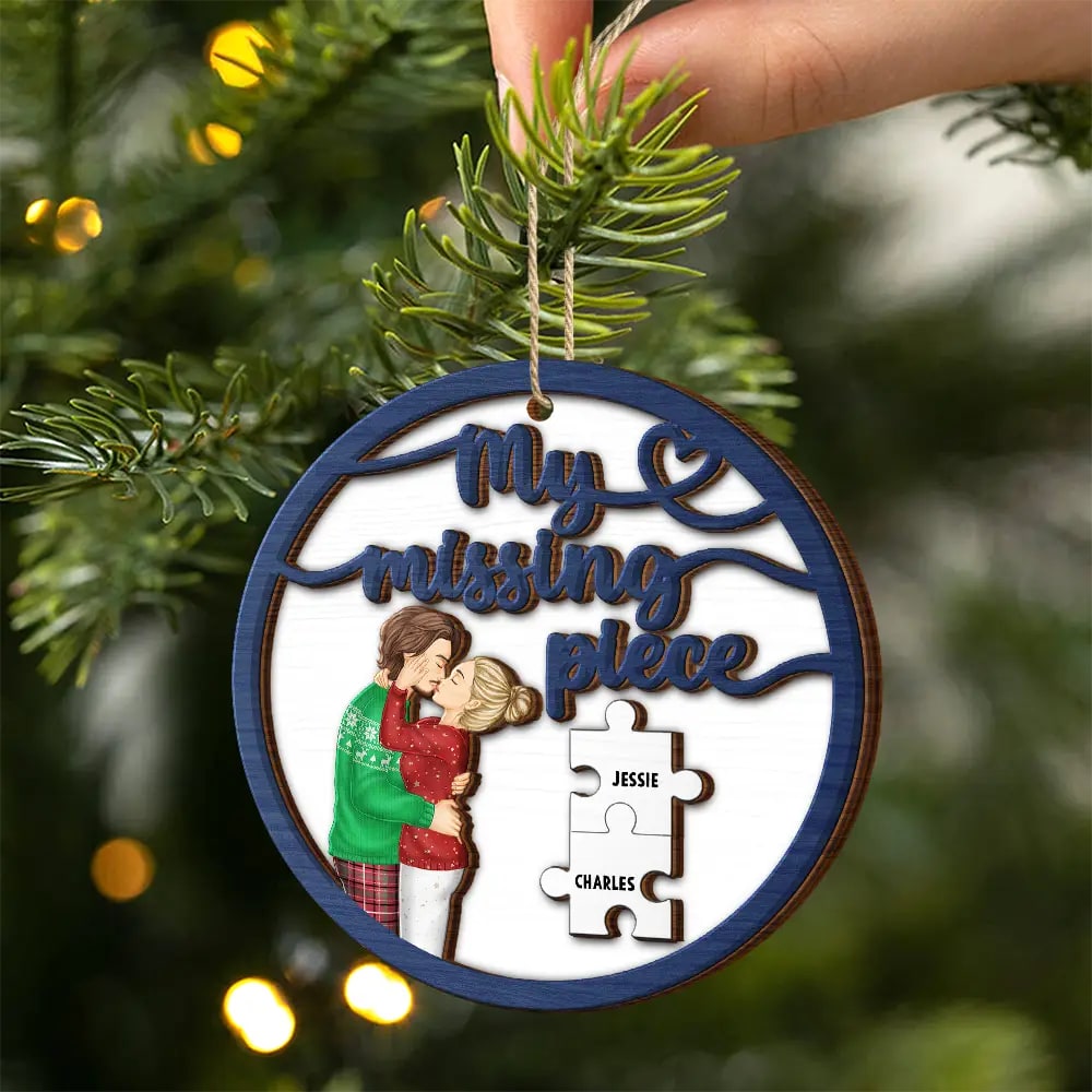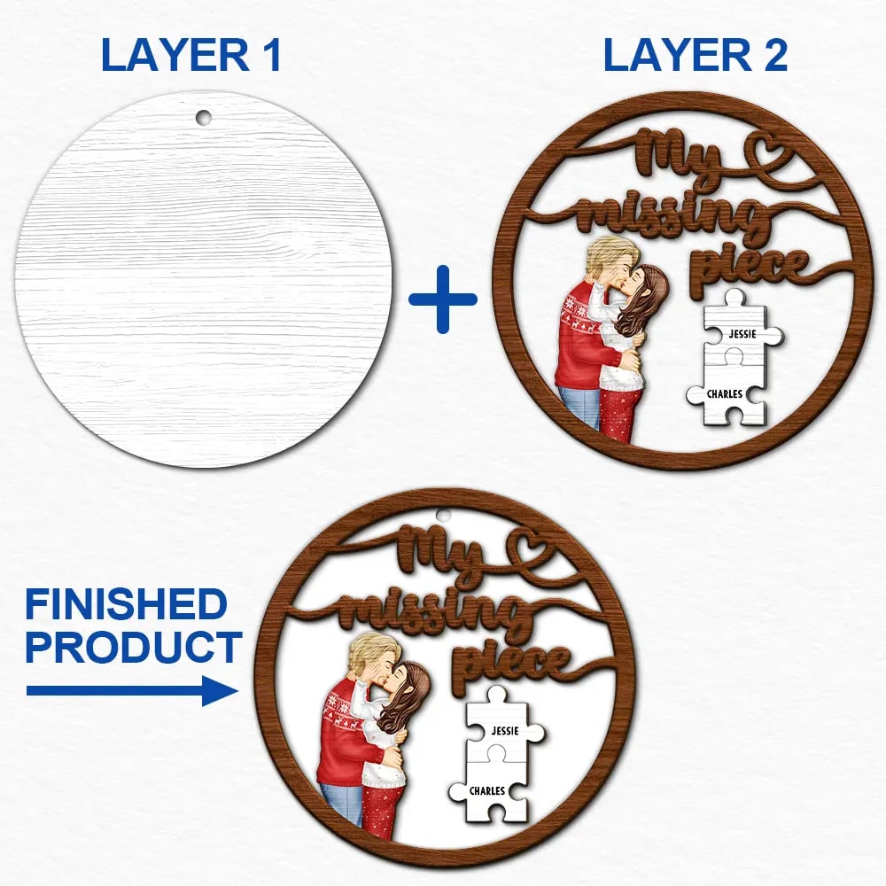 Couple Side View My Missing Piece – Personalized 2-Layered Wooden Ornament