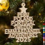 Celebrate the joy of love and wanderlust with the Couple Travel Goal Adventures Of The Year – Personalized Custom Shaped Wooden Ornament, a unique keepsake designed for couples who treasure their journeys together. Perfect for Christmas, Birthdays, Valentine’s Day, Anniversaries, Mother’s Day, or Father’s Day, this ornament is a meaningful reminder of milestones and shared adventures.
