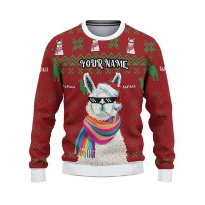 Custom Christmas Thug Life Alpaca Red And Green Ugly Christmas Sweater