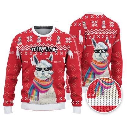 Custom Christmas Thug Life Alpaca Red And White Ugly Christmas Sweater