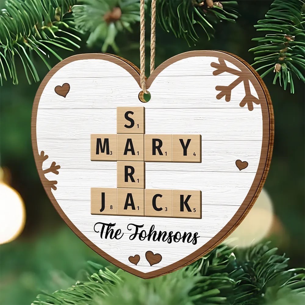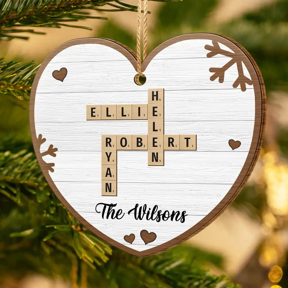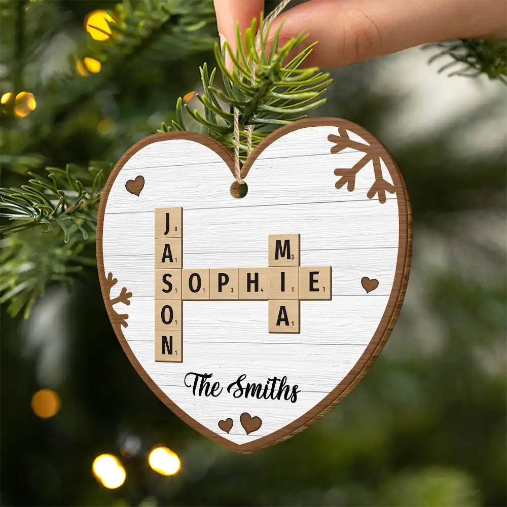 Custom Family Name Heart Crossword Scrabble – Personalized Custom Shaped Wooden Ornament