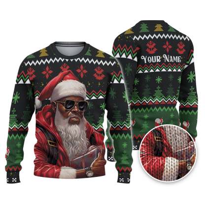 Custom Funny Holiday Black Gangsta Santa Ugly Christmas Sweater