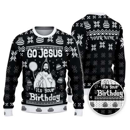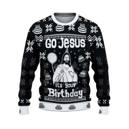 Custom Funny Holiday Happy Jesus Birthday Black Ugly Christmas Sweater