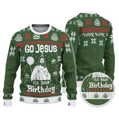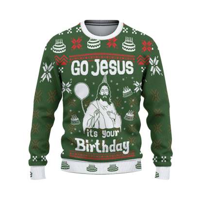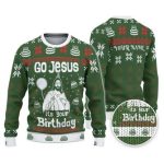 Custom Funny Holiday Happy Jesus Birthday Green And Red Ugly Christmas Sweater