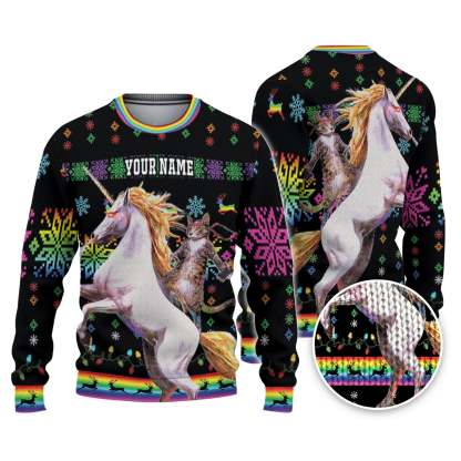 Custom Funny Holiday Ninja Cat And Unicorn Ugly Christmas Sweater
