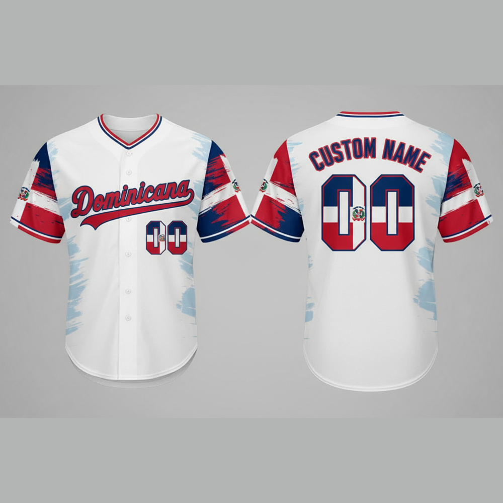 Custom Name and Number White Dominican Republic Flag Baseball Jersey Costumes Player For WBC