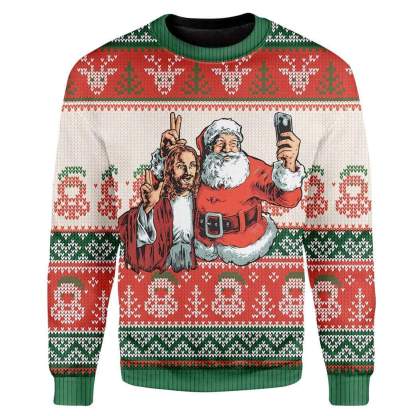Custom Ugly Santa And Jesus Christmas Sweater With Full Size