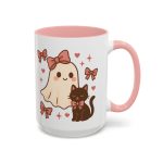 This charming accent coffee mug adds a touch of whimsy to your day with its playful design featuring adorable ghosts and cats. It’s perfect for creating a warm and inviting atmosphere, whether enjoyed during cozy mornings or relaxing evenings. Ideal for coffee, tea, or any hot beverage, this mug makes a delightful gift for any occasion.