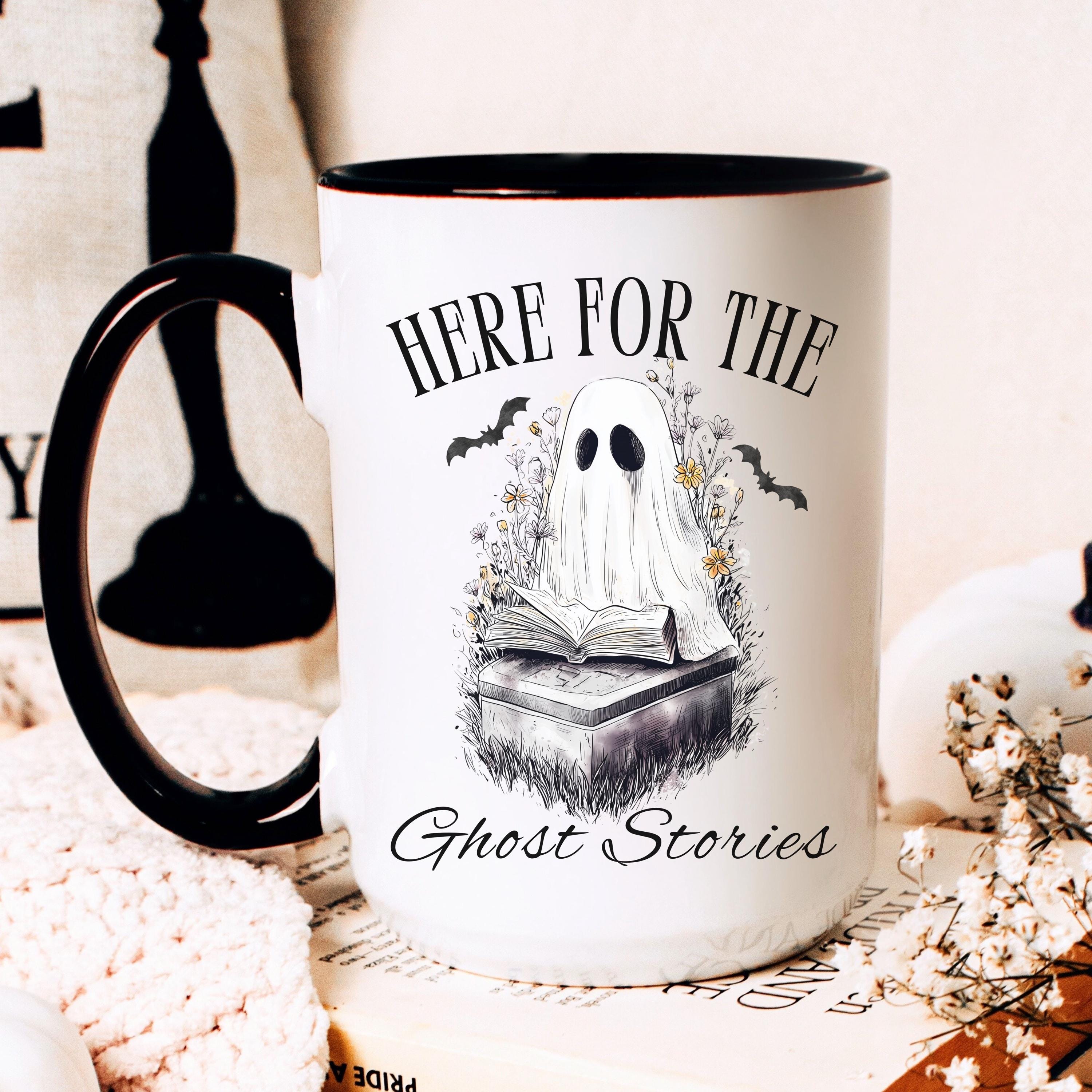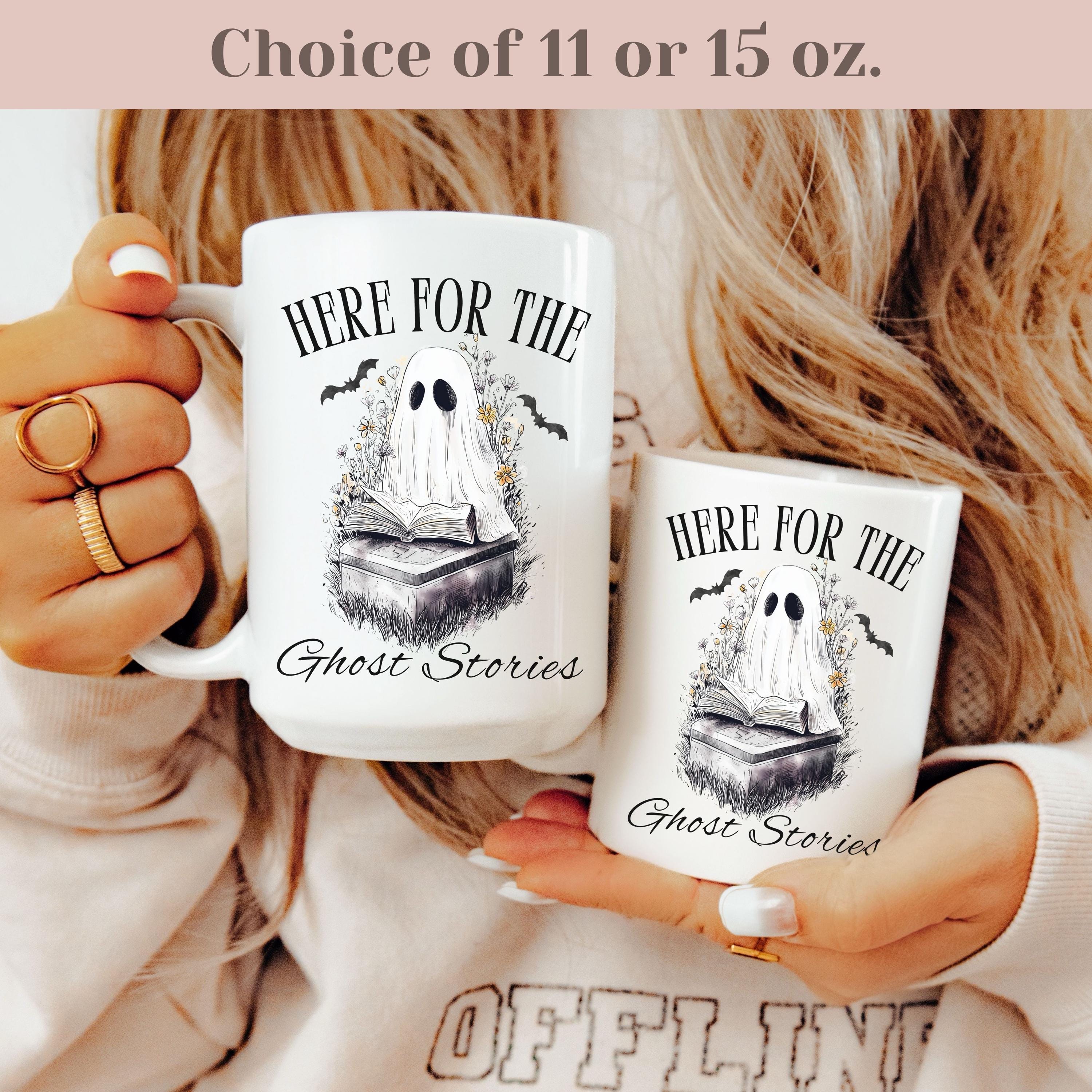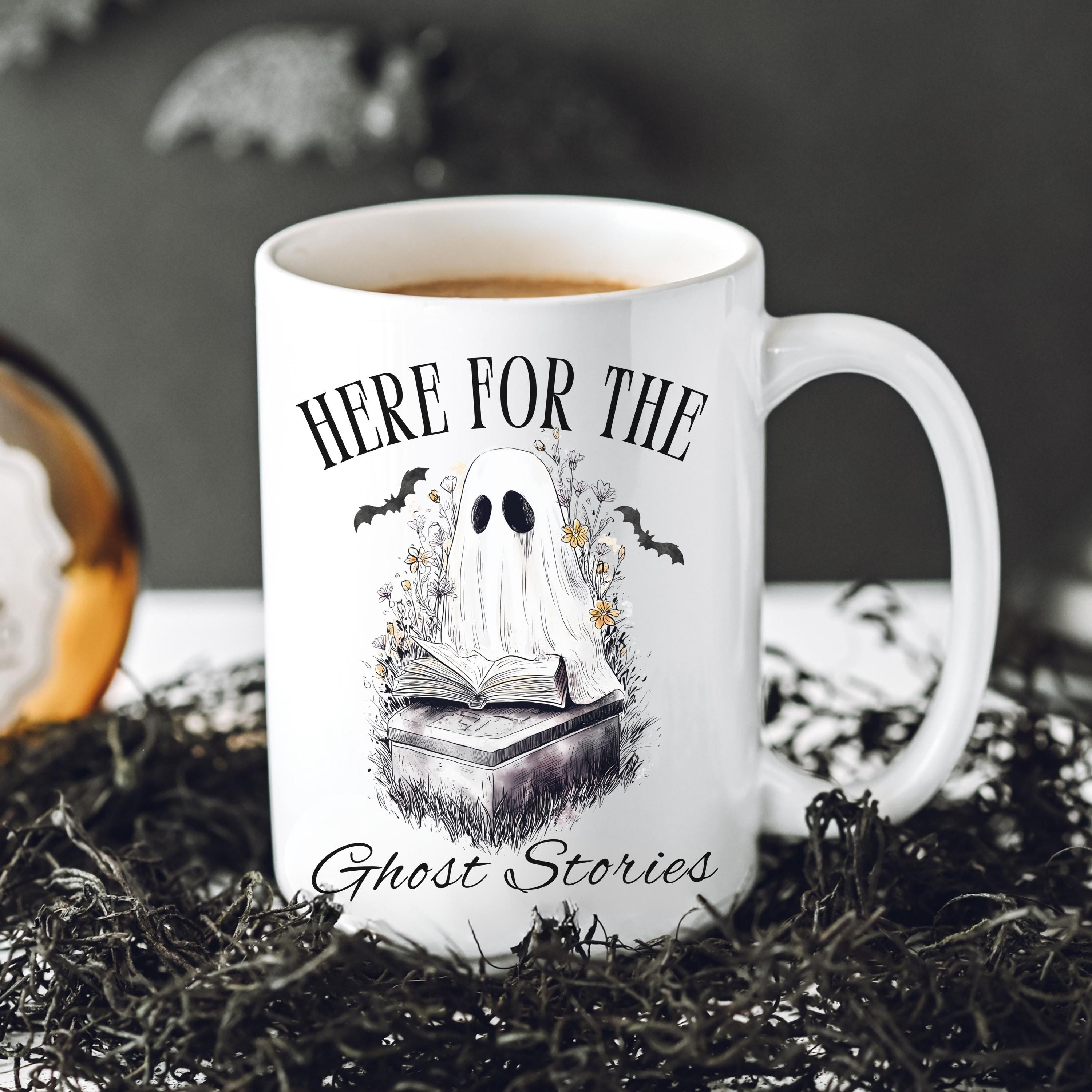 Sip in spooky style with this ghostly cute Halloween mug! Featuring a sweet ghost in lace reading a book, surrounded by pastel florals and fluttering bats, it’s perfect for cozy horror reads and haunted fall vibes. A must-have for bookish ghouls and spooky season lovers!