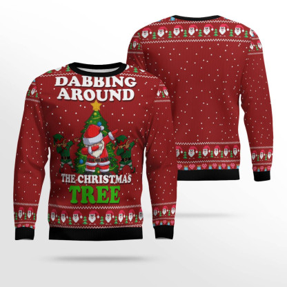 Dabbing Around The Christmas Tree Santa Claus And Goblin Ugly Christmas Sweater