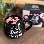 Stay cozy with this playful ceramic mug and socks set, featuring a bold “Dead Thirsty” slogan and a fun pink and black gothic design. Perfect for tea or coffee lovers who enjoy a quirky, alternative twist to their drinkware.