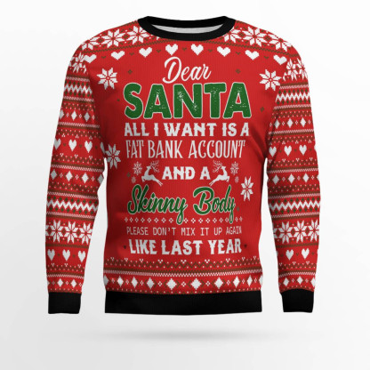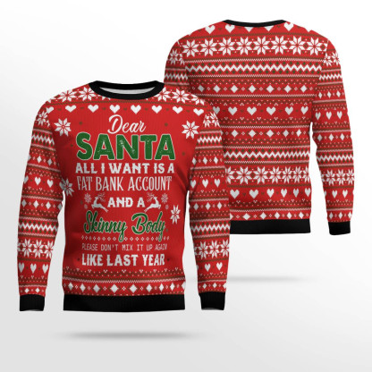 Dear Santa All I Want Fat Bank Account Skinny Body Ugly Christmas Sweater