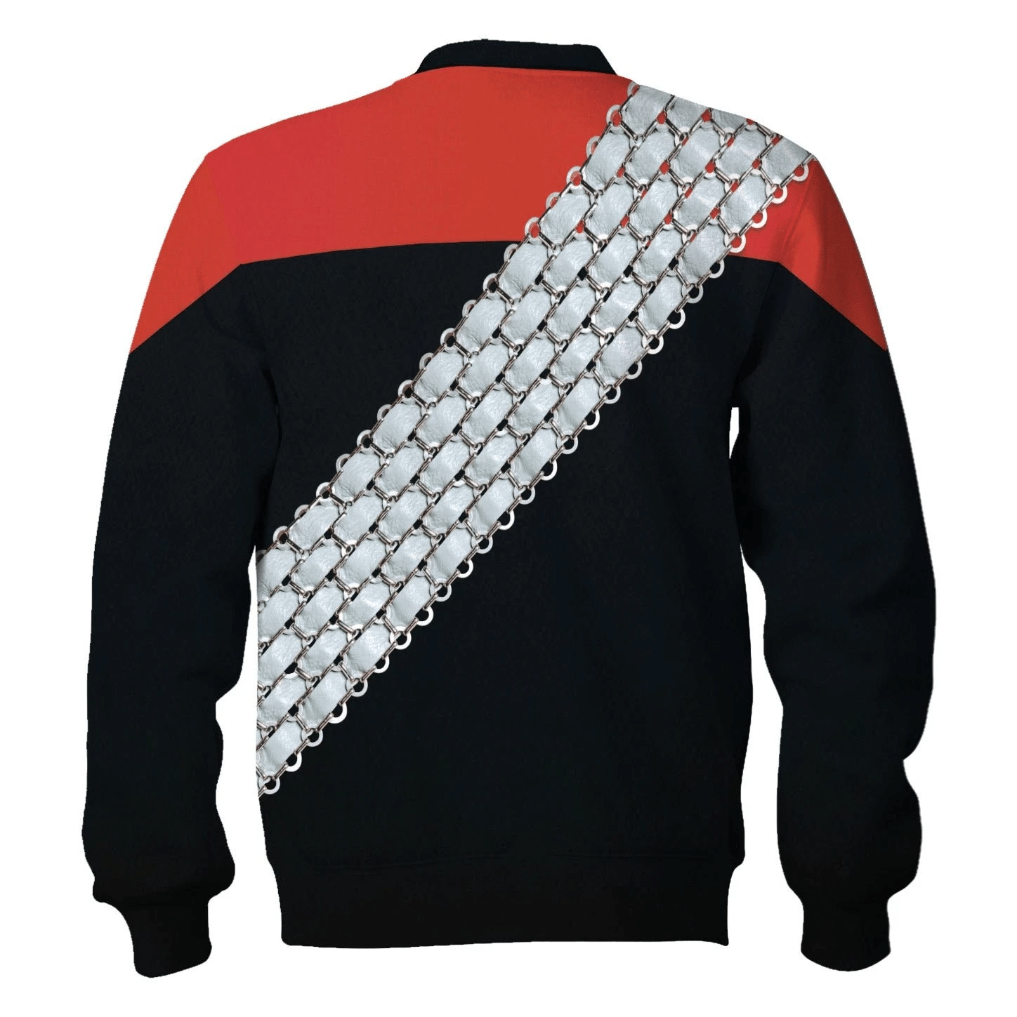 The Deep Space Nine Worf Red Apparel Sweatshirt is the ultimate choice for all-over-print apparel lovers, offering a unique blend of fandom and fashion. This piece from The Halloween Smoke makes for a thoughtful gift, especially for those who appreciate personalized touches in their wardrobe.
