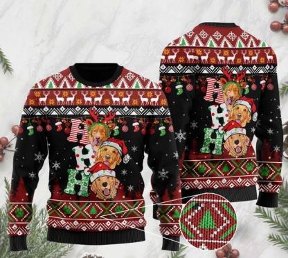 Dog Lover Golden Retriever Ho Ho Ho Ugly Christmas Sweater