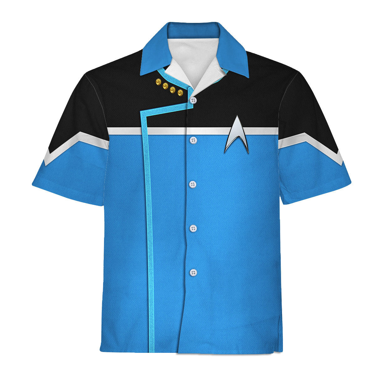 The Dress Uniform Science Division Blue Apparel Hawaiian from The Halloween Smoke is the perfect choice for all-over-print apparel lovers, offering a unique and eye-catching design that makes it an ideal gift for any occasion. With the option for personalization, this exclusive piece allows you to express your individuality while celebrating the spirit of Halloween.