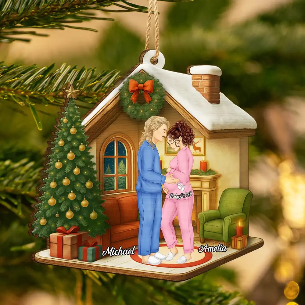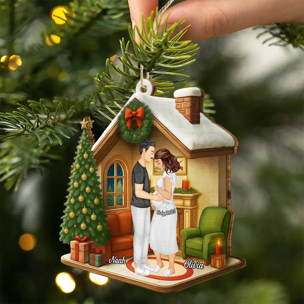 Expecting Parents Christmas Pregnancy – Personalized Custom Shaped Wooden Ornament