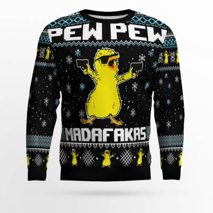 Fat Duck Pew Pew Madafakas Ugly Christmas Sweater