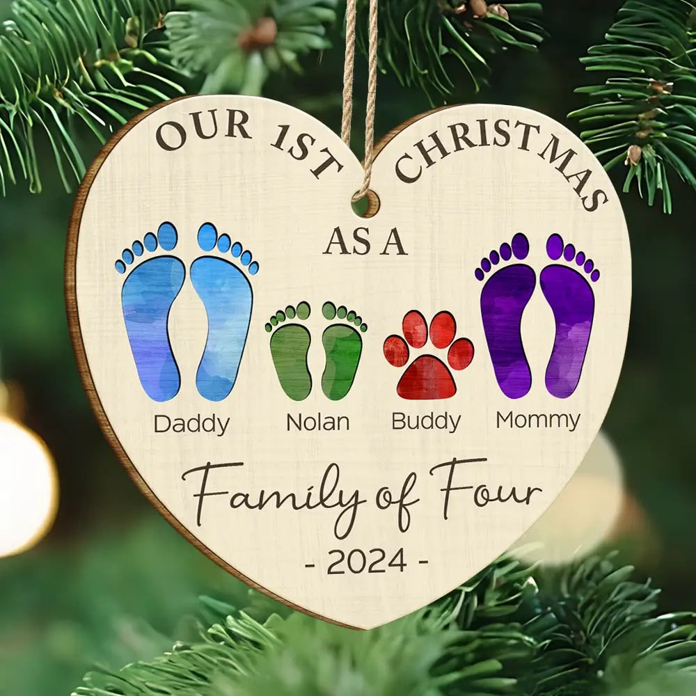 First Christmas As A Family Of Four Color Footprints - Personalized Custom Shaped Wooden Ornament