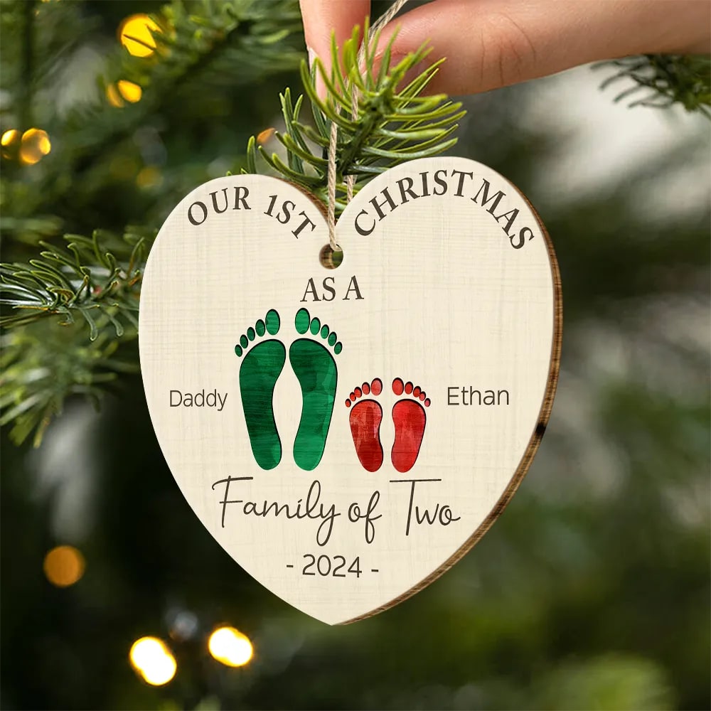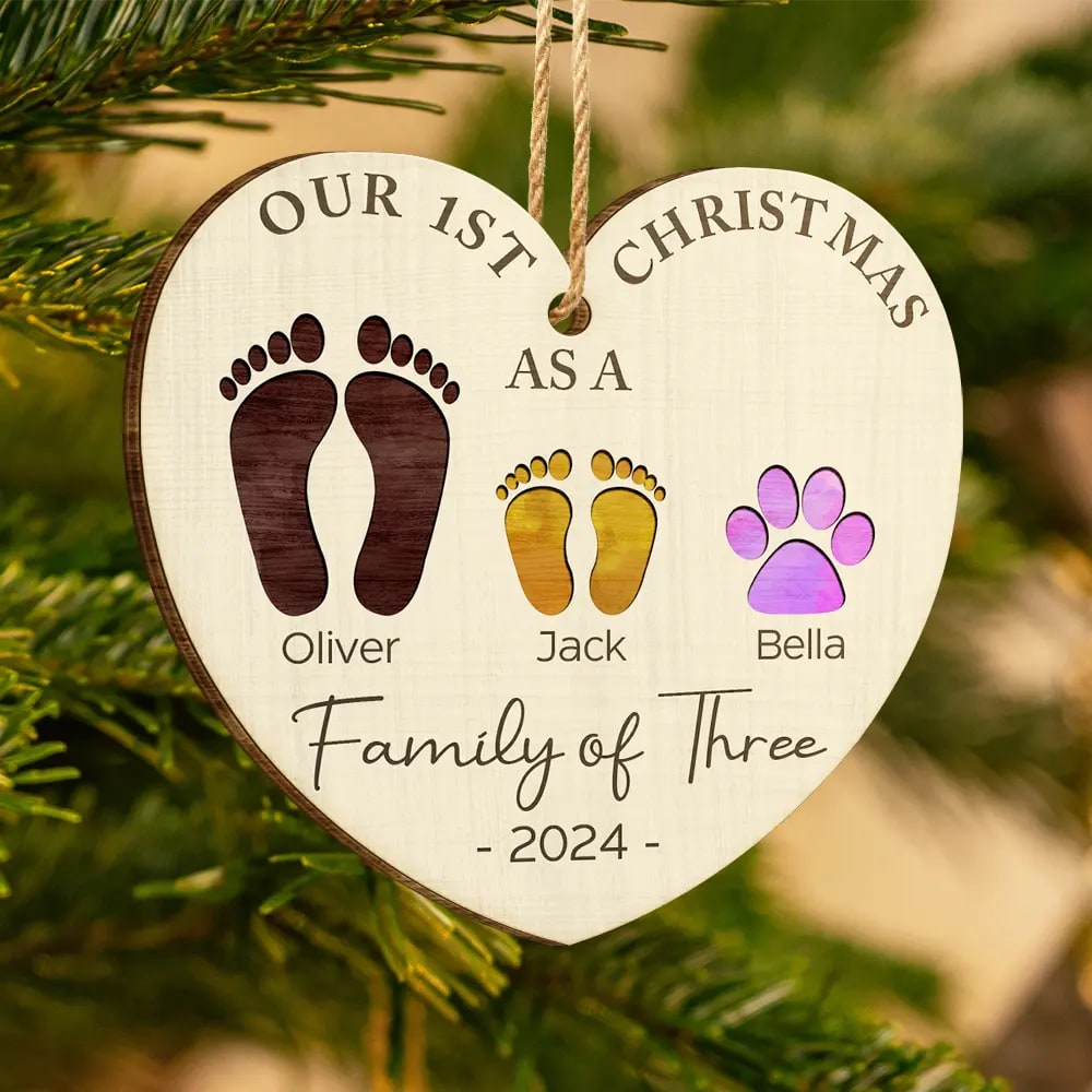 First Christmas As A Family Of Four Color Footprints – Personalized Custom Shaped Wooden Ornament