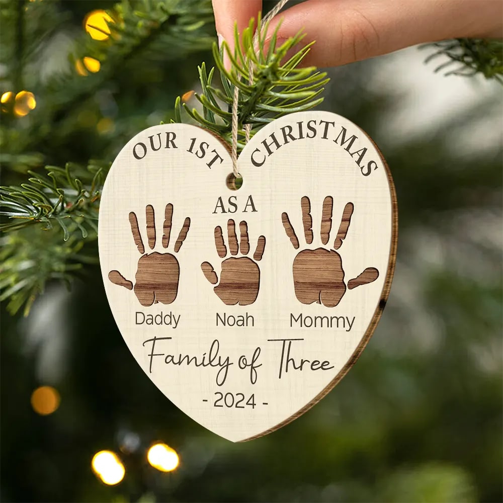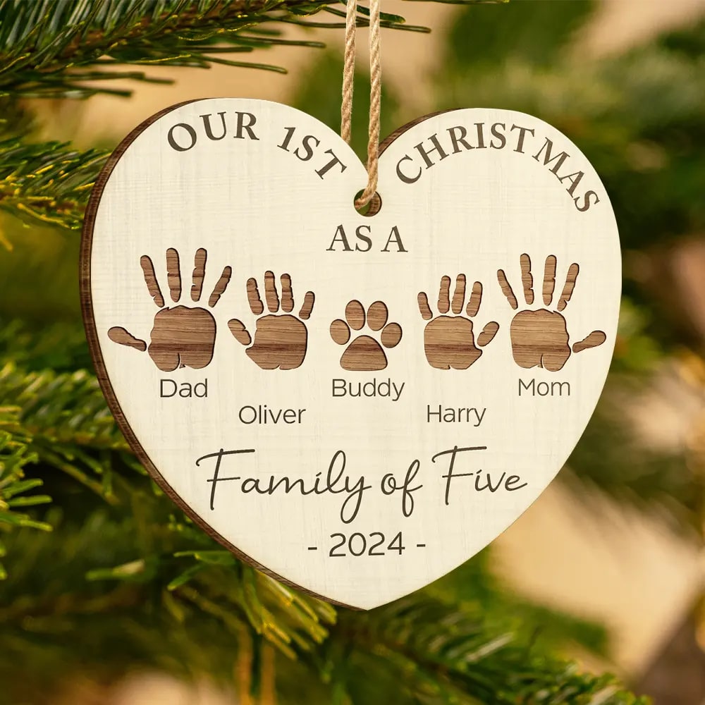 First Christmas As A Family Of Four Handprints – Personalized Custom Shaped Wooden Ornament