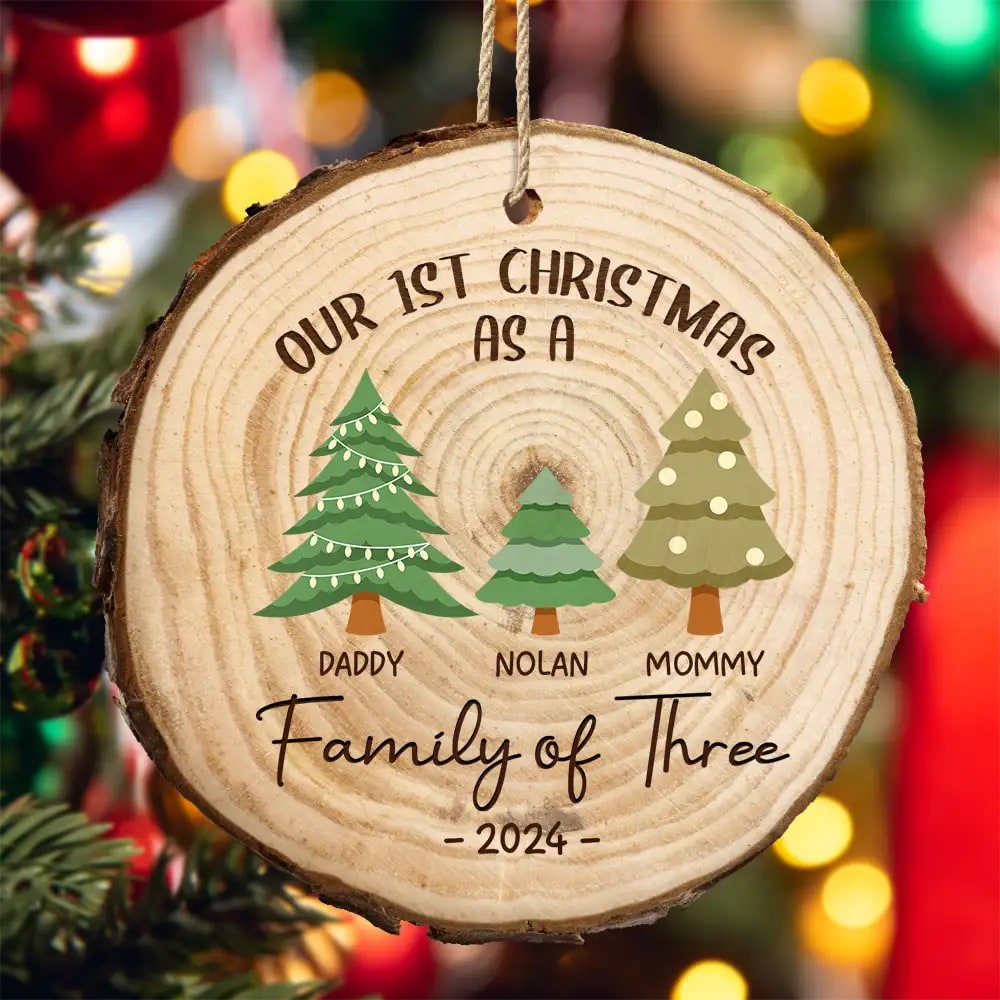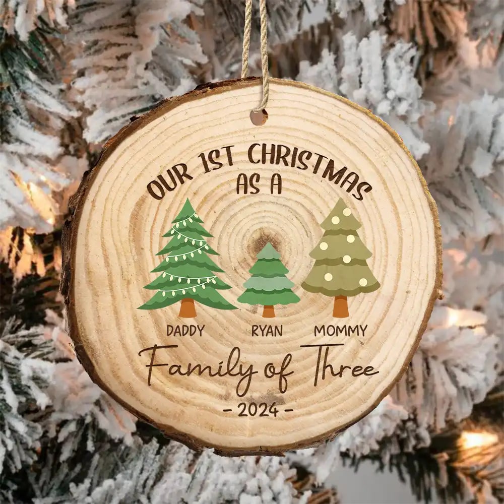 First Christmas As A Family Of Three – Personalized Wood Slice Ornament