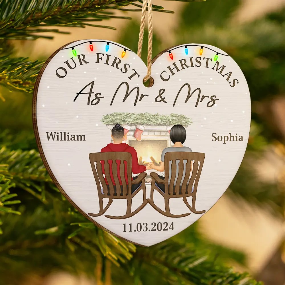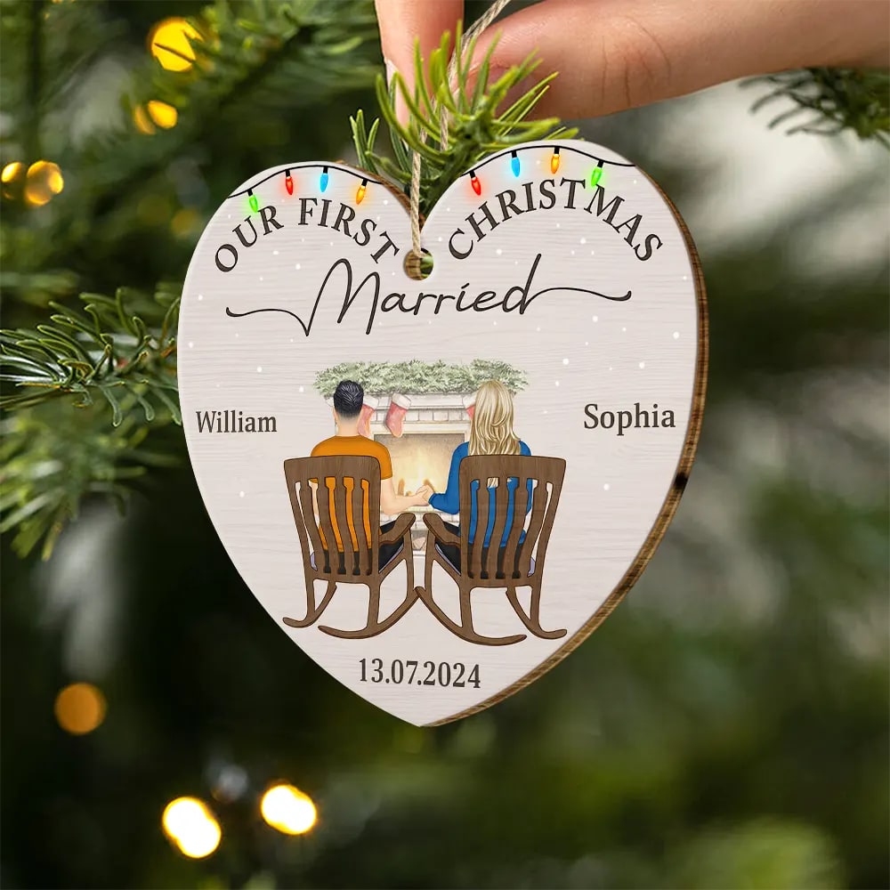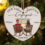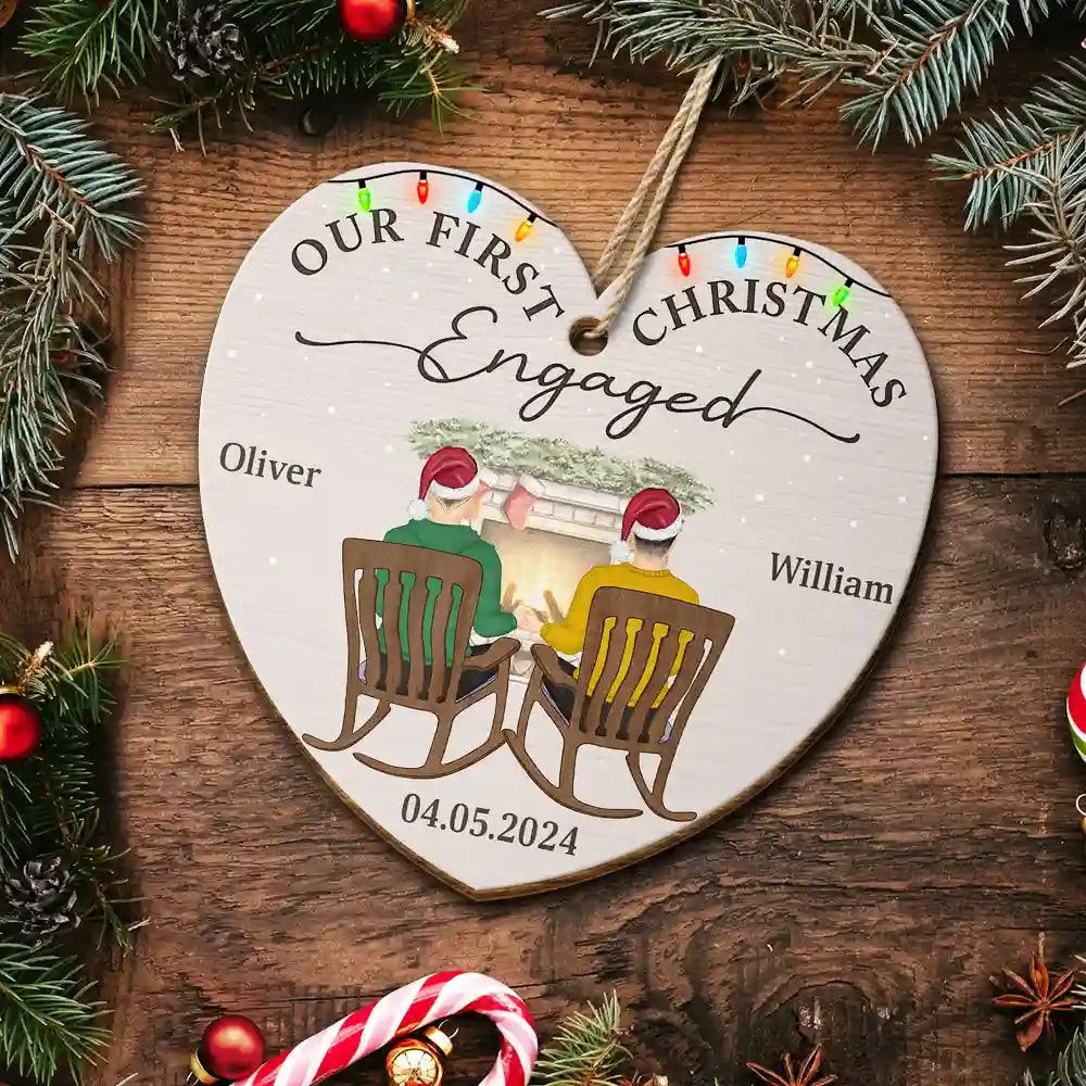 First Christmas Engaged Couples – Personalized Custom Shaped Wooden Ornament