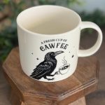 A unique gift for gothic decor fans, bird lovers, or anyone who enjoys a mysterious start to their morning brew.