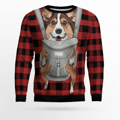 Front Carrier Dog Pembroke Welsh Corgi Ugly Christmas Sweater